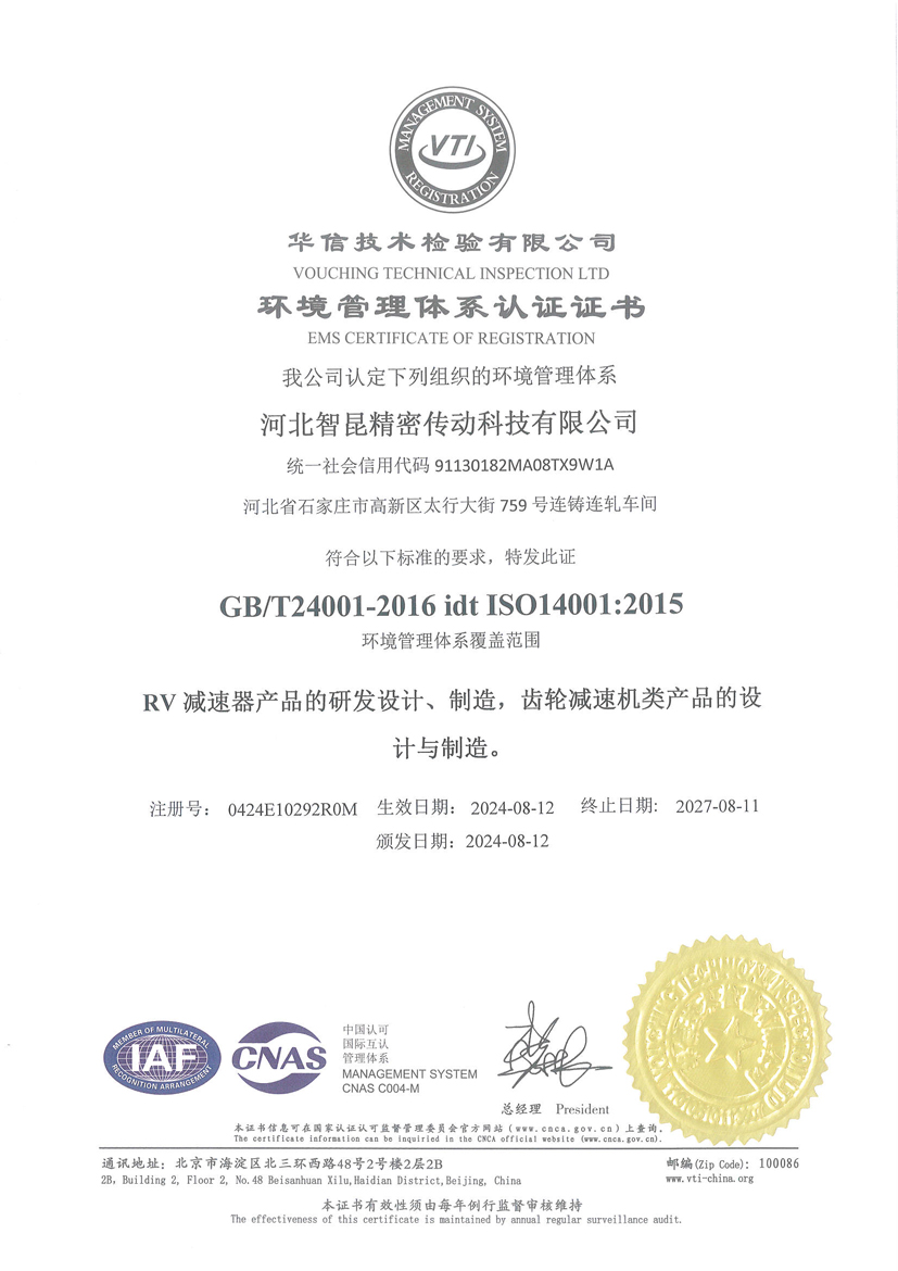ISO14001環境管理體系證書